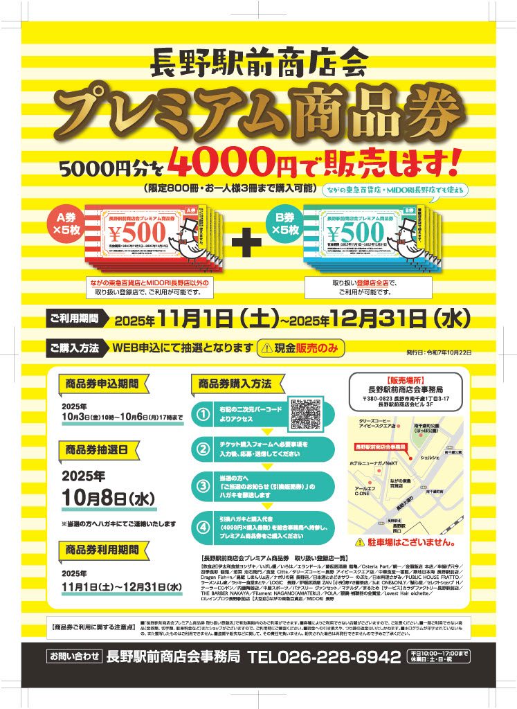 (正)Aチケット500円×5枚 ながの東急百貨店、MIDORI長野店以外の取扱い登録店舗で利用可能